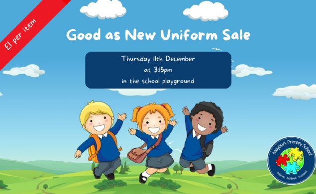 Good as New Uniform Sale on Thursday 11th December at 3:15pm in the school playground