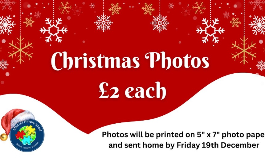 You will have the opportunity to view a sample photo of your child. This will be displayed before and after the Christmas performances. Photos are £2 each, please bring cash on the day to pay for these. Photos will be printed on 5" x 7" photo paper and sent home with your child by Friday 19th December.