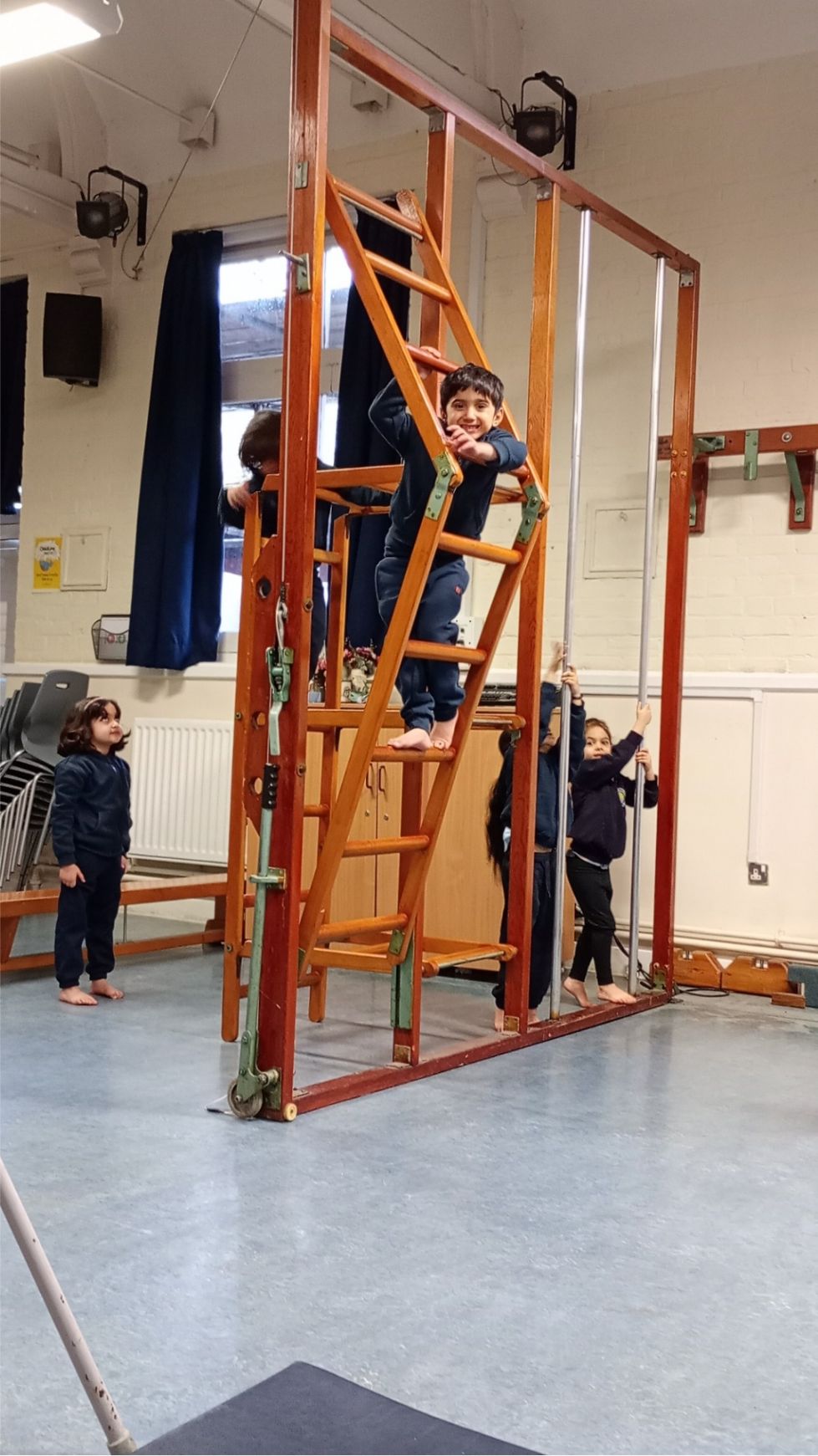 Rabbit class were very excited in their first PE lesson this term. We got out the wall bars and practised climbing and balancing across different apparatus. We also learnt how to jump off equipment safely by bending our knees and landing on our feet. We are all really looking forward to next Friday when we will get the wall bars out again.