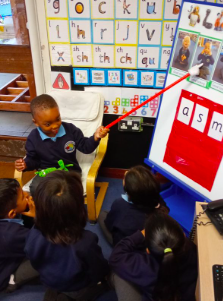 The children in Rabbit Class are really enjoying their phonics learning and are excited every morning to find out what sound they are learning each day. The children have enjoyed practising their sounds as they play in our school role play being the teacher.