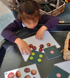In maths, we have introduced children to subitising, an essential maths skill for developing the composition of numbers. The children use their 'fast eyes' to say the amount of objects/dots they see, they don't count and also represent each amount on their fingers.