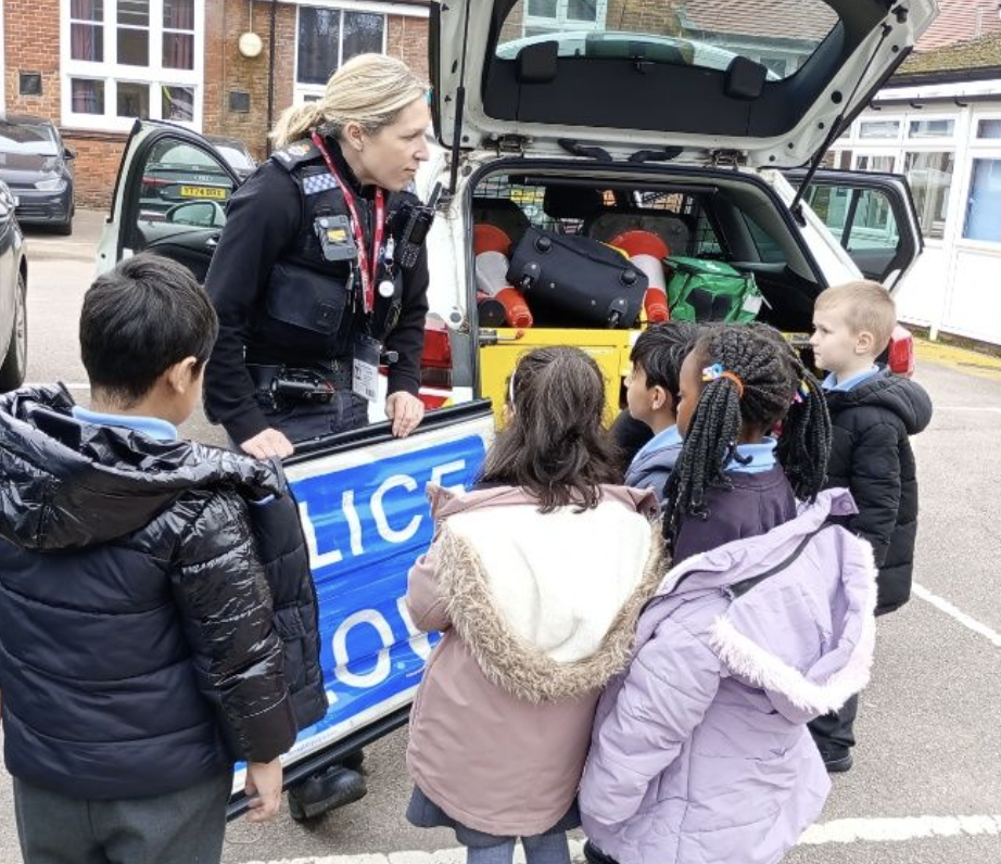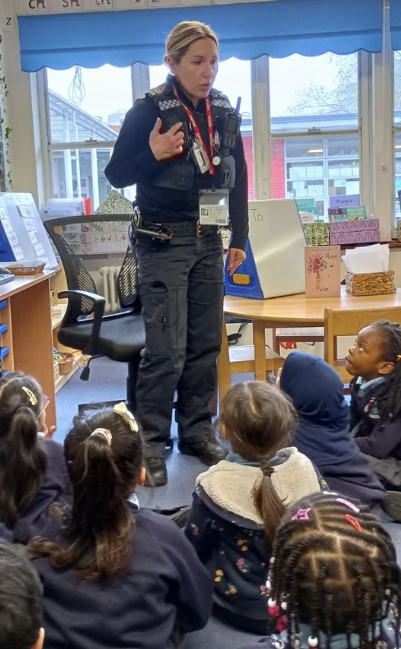 PC Hannah came to Rabbit Class to tell us all about her job and how the police help to keep us safe. She told us what number to call if we needed help. PC Hannah let us dress up in real police clothes and showed us her car. She explained about all the tools she has on her vest and tool belt.