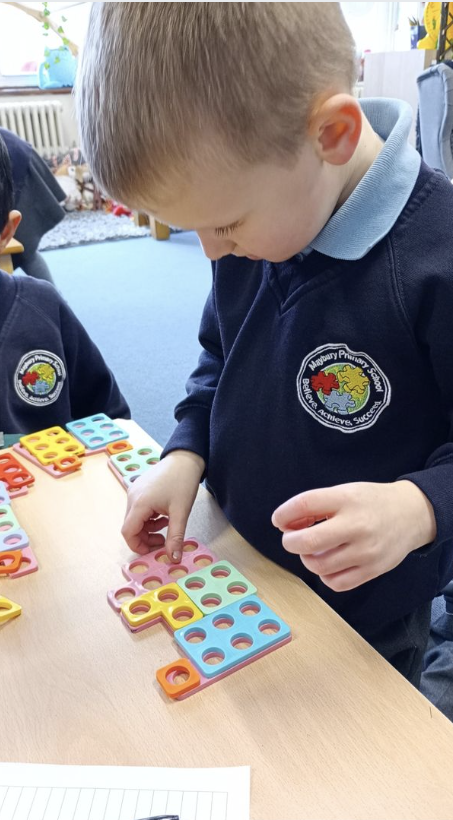 The children in Rabbit Class have enjoyed finding different ways to make 7. They have used the STEM sentence '7 is made of....' They have learnt to represent the different ways using their fingers and recording it in their own ways.