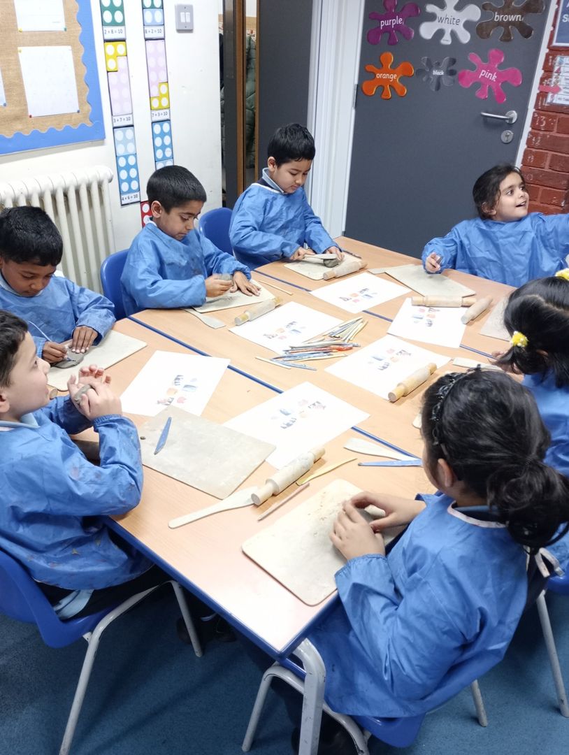 We are looking at sculpture in our art lessons. The children learnt how to make their own paper snowflakes by folding and cutting. They had to follow the instructions very carefully and were very excited by their finished results. They have also enjoyed using the clay to create their own Autumn sculpture.