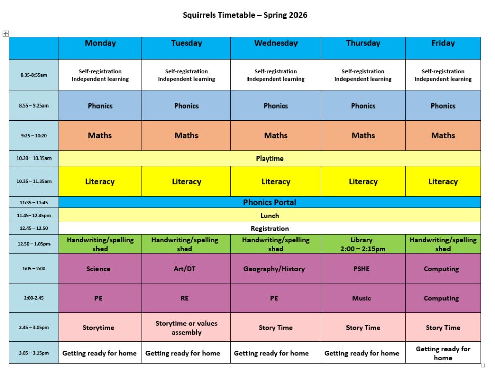 We have already had a very busy start to 2026. Squirrels PE days are Monday and Wednesday for this half term. Homework is being sent home on a Monday and is due back in the following Monday. The children have started learning about weather in Geography, materials and their properties in Science, digital literacy in computing and have started a seasonal art journey.