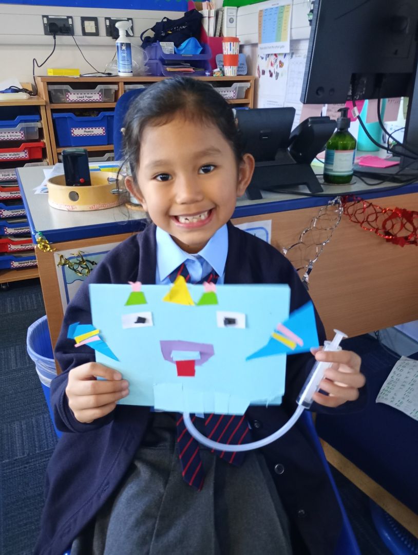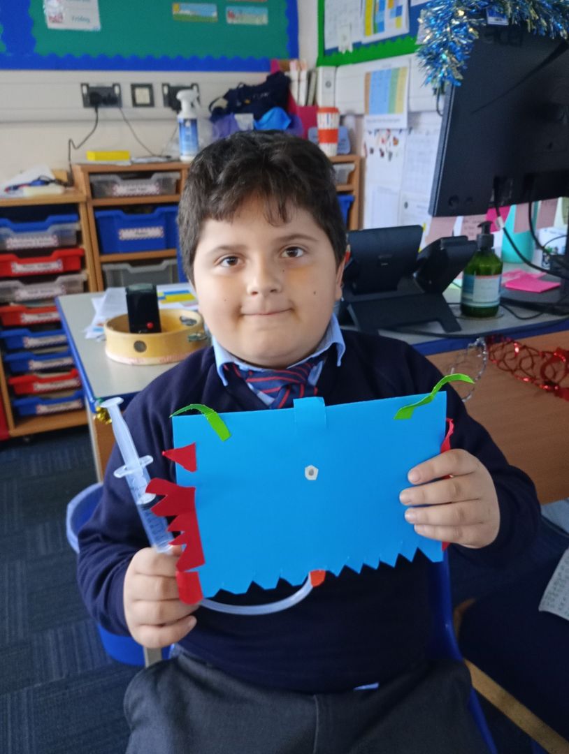 In DT, we loved designing and making our own pneumatic monsters. The children used a piece of plastic tubing and two syringes to make their monster open and close its mouth. They all looked so different and unique with different teeth, horns, eyes and colours!