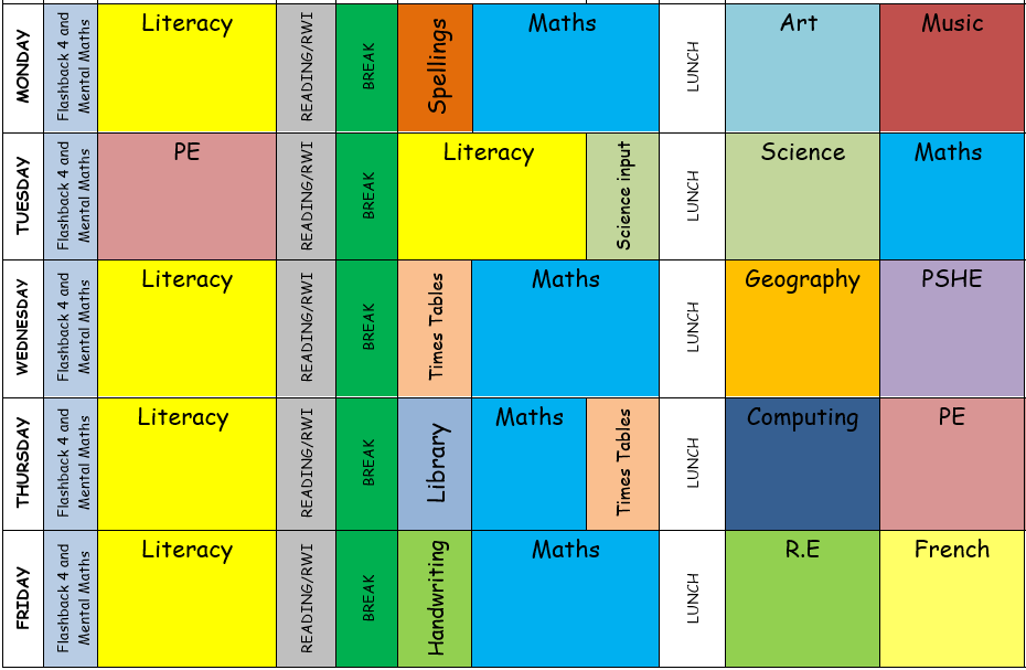 Here is the timetable for Kingfisher Class for the Spring term: