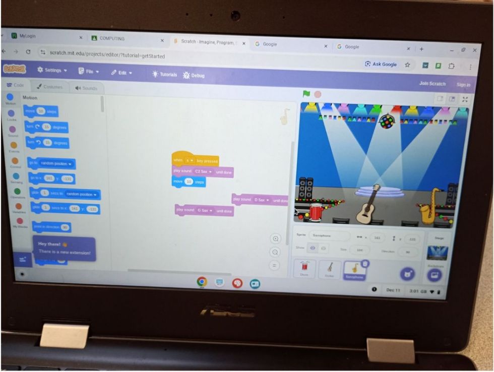 In Computing we have been learning to program and add sounds in Scratch. The children are becoming confident at programming a sprite to move and make sounds and love their Computing lessons.