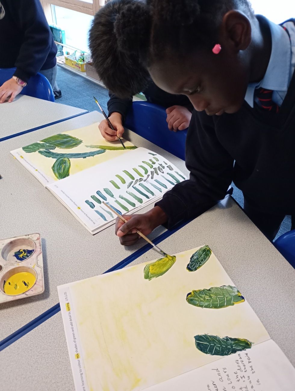 In Art, the children learnt dip and dap painting techniques to colour mix green paint straight onto their page! They then used this skill to create some amazing Henri Rousseau inspired artwork.