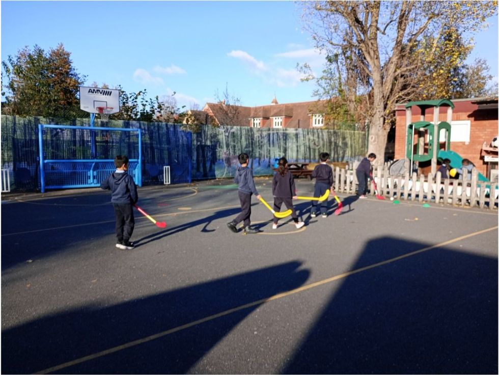 In PE, we are doing handball and hockey. The children are developing lots of great skills that they can use in both sports and show great teamwork and energy.