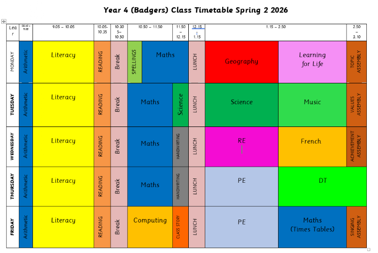 For Spring 2 we will have P.E on Thursday and Friday. Please wear your P.E kit on these days.