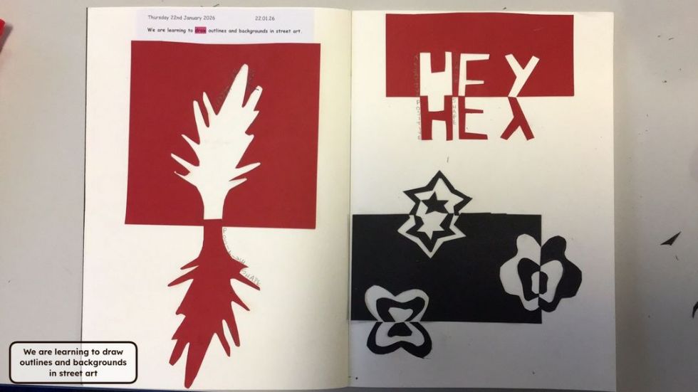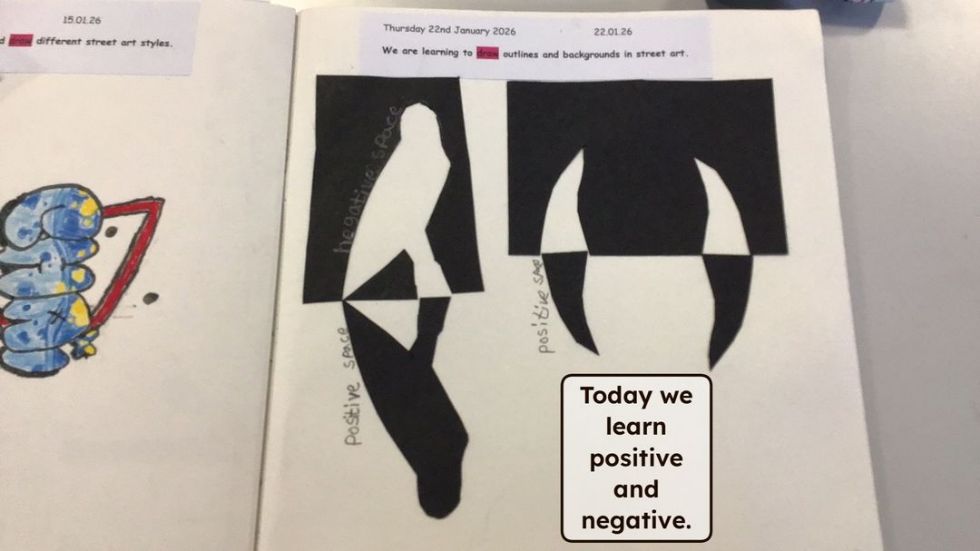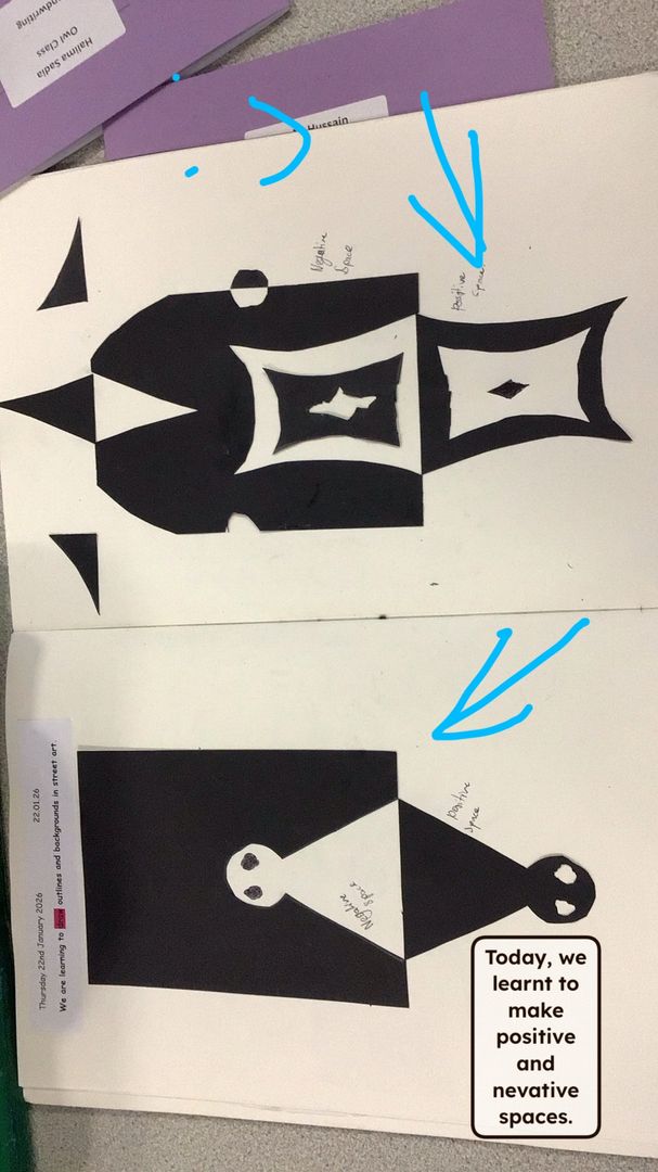 In Art, we have been looking at street art and the famous artist Banksy. The children enjoyed looking at a range of his art works and debated whether they thought it was art or graffiti, it was a very interesting topic! The children have been learning how to create depth in their art work by looking at positive and negative space and creating these in their work. We had some great results!