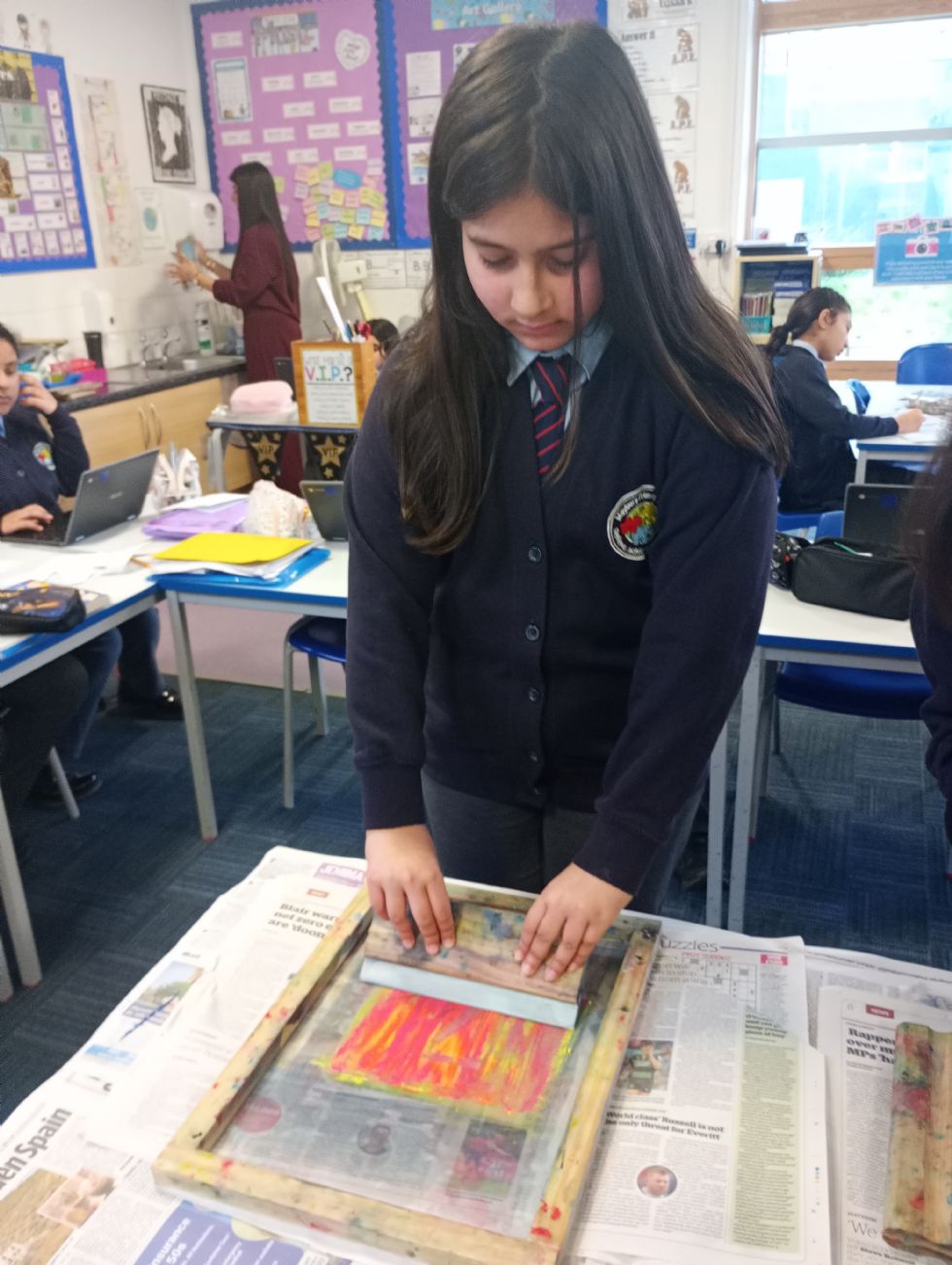In art, we completed our street art unit and had a go at screen printing our own designs they had made using positive and negative space. We had a fun morning printing them and the children were very pleased with their results.